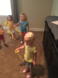 Black and white day was our last day and we had lots of fun with spiders. We made a spider friendship web and said something nice about each friend in our class. We worked on tracing letters and writing our name more. We used a big giant spider I made out of a fly swatter to slap each letter we needed to find and we made a spider our of the number 8. The kids couldn't believe spiders really had 8 eyes and loved gluing on 8 eyes and 8 legs. We made a yummy spider snack out of Oreos and pull apart licorice. And everyday we have been singing singing singing! We love singing to songs to get ready to listen, songs to learn our months of the year and days of the week, songs to learn our colors, songs to say hello and goodbye and just fun songs to move and dance.